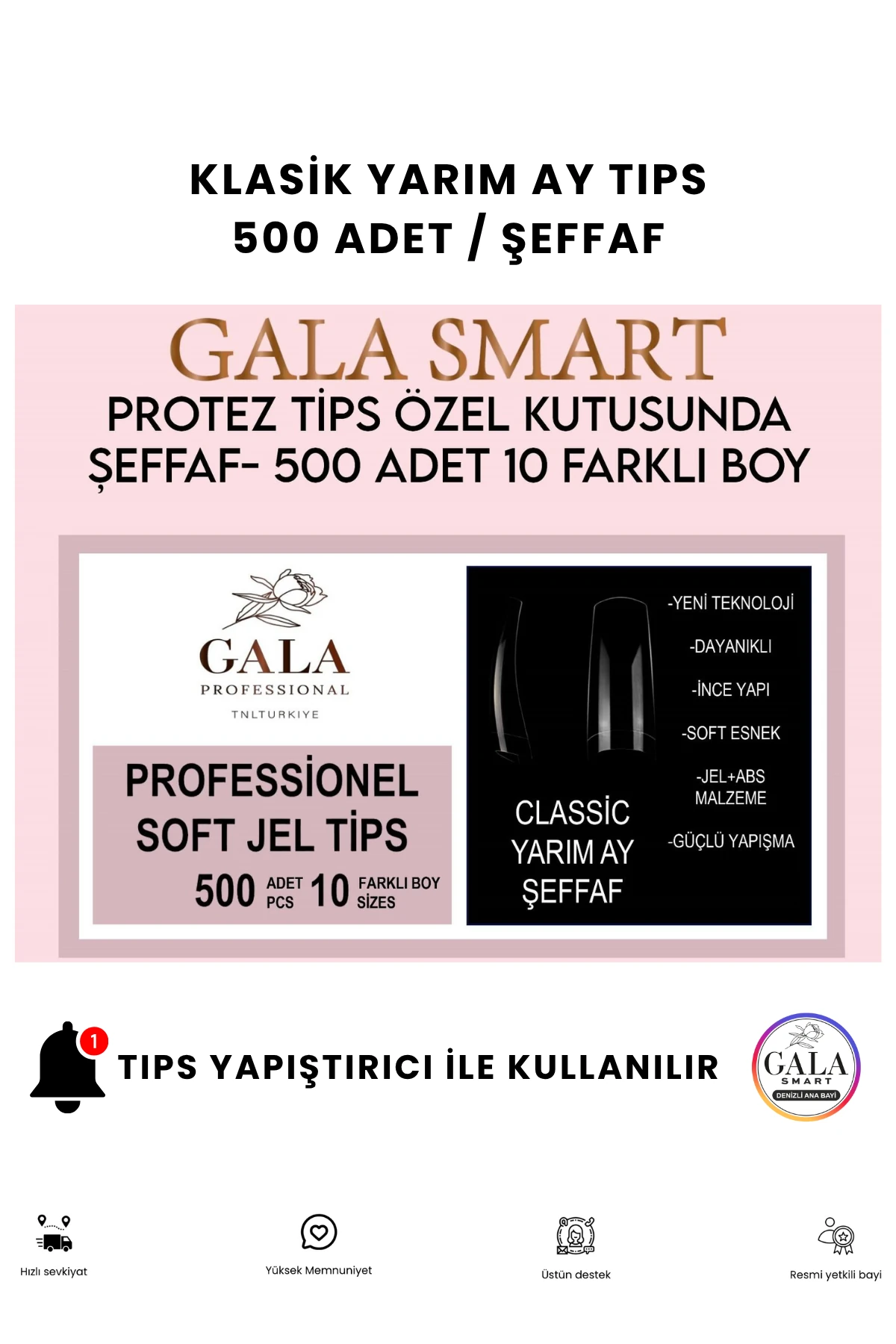 Gala Smart Yarım Ay Tipsleri, özel olarak formüle edilmiş Gala Smart Tips Yapıştırıcı ile birlikte kullanıldığında maksimum performans gösterir.